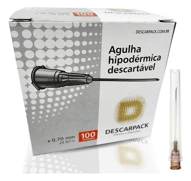Agulha 25 X 0,70 MM 22G Descartável Estéril Hipodérmica 100 Unidades