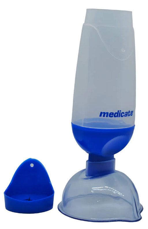 O Espaçador Bi-valvulado Medicate é um dispositivo com design e tecnologia avançados, desenvolvido para aumentar a eficácia dos medicamentos em spray usados no tratamento de asma, bronquite e outras doenças respiratórias. Este produto otimiza a técnica de inalação do medicamento spray através de inalador dosimetrado (MDI), mais conhecidos como bombinhas, pois melhora a coordenação na inspiração do medicamento, diminuindo a deposição na orofaringe e aumentando a deposição pulmonar. Este espaçador é indicado para uso individual adulto e infantil, podendo ser utilizado com máscara ou diretamente no bocal. Possui câmera com capacidade de 250ml, encaixe universal compatível com a maioria dos medicamentos em spray do mercado e bocal com válvula unidirecional em silicone para evitar desperdício de medicamento. Além disso, é portátil, reutilizável e totalmente lavável, podendo ser desmontado para higienização.