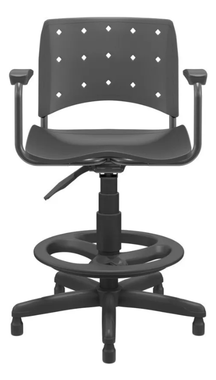 DESCRIÇÕES TÉCNICAS Material do Assento e Encosto: Polipropileno Base fixo/capa com regulagem de altura à gás Braço fixo integrado com apoio em PP na cor do encosto Dimensões do Assento (LxP): 46,5 x 42 (cm) Dimensões do Encosto (LxA): 46 x 33 (cm) Regulagem de Altura: 66 a 77 cm Peso Máximo Suportado: 120kg